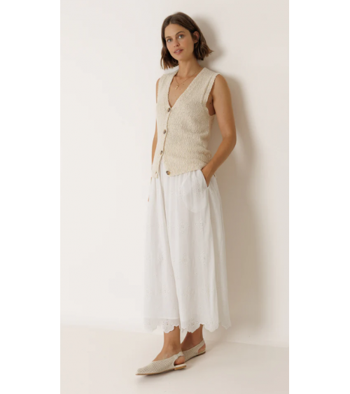 Quick view Añadir a la cesta Lista de deseos Añadir a comparar Falda blanca larga cintura engomada silueta acampanada INDI&COLD Precio 125,00 € Falda larga con cintura engomada, bolsillos insertados en costura y silueta acampanada. Puro ADN Indi con bordado suizo y el bajo ondeado acabado...