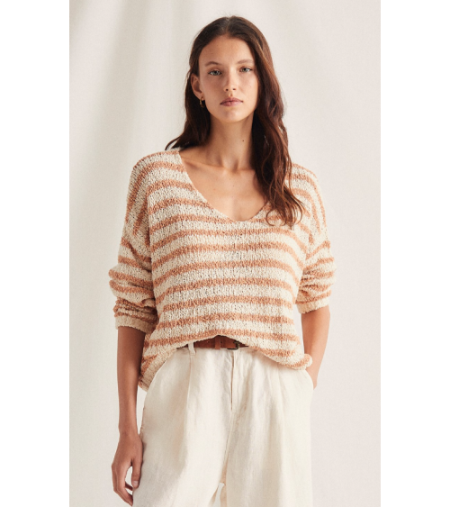Quick view Añadir a la cesta Lista de deseos Añadir a comparar Jersey crudo listas rosas escote pico manga larga rústico MI&CO Precio 79,90 € Jersey de punto listado. Modelo con escote en pico y manga larga. Confeccionado en un tejido rústico semi abierto.