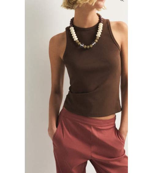 Quick view Añadir a la cesta Lista de deseos Añadir a comparar Top marrón chocolate algodón escote halter tirantes ESEOESE Precio 29,90 € El top Zoe es una prenda confeccionada en algodón orgánico, en color marrón chocolate. Diseñado con escote halter y embudos del mismo tejido,...
