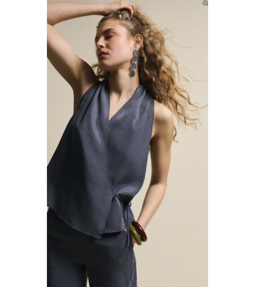 Quick view Añadir a la cesta Lista de deseos Añadir a comparar Top azul humo cruzado tejido viscosa ESEOESE Precio 69,90 € Top cruzado en tejido de efecto cupro, confeccionado en mezcla de Tencel y viscosa. ESEOESE