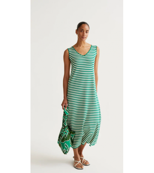 Quick view Añadir a la cesta Lista de deseos Añadir a comparar Vestido largo blanco/verde de rayas sin mangas cuello pico COMPAÑÍA FANTÁSTICA Precio 45,00 € Vestido largo con tejido de punto estampado de rayas de color blanco y verde. Escote pico y sin mangas. COMPAÑÍA FANTÁSTICA