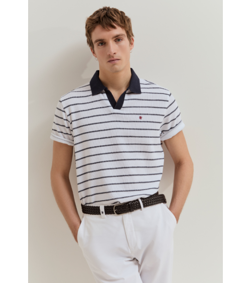 Quick view Añadir a la cesta Lista de deseos Añadir a comparar Polo rayas horizontales blanco/marino cuello V manga corta LION OF PORCHES Precio 59,99 € Polo de manga corta confeccionado en 100% algodón, con una textura de punto ligera y transpirable. Destaca por el patrón de rayas horizontales y...