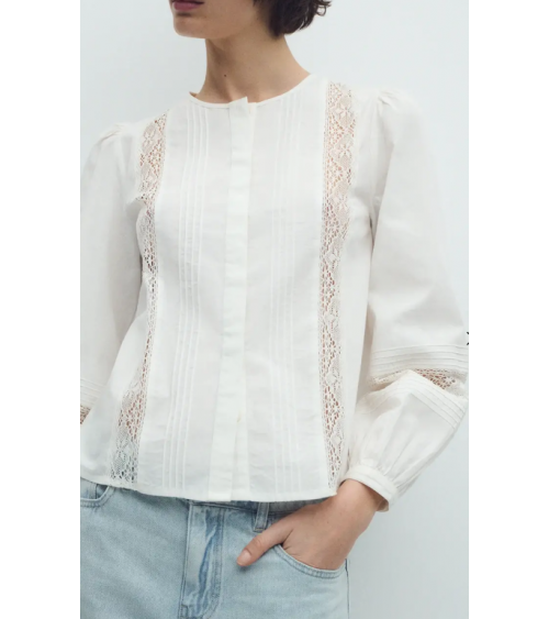 Quick view Añadir a la cesta Lista de deseos Añadir a comparar Blusa blanca cuello redondo manga larga detalle puntillas ESEOESE Precio 59,90 € Blusa en color blanco con detalle de puntilla de manga larga y cuello redondo. ESEOESE