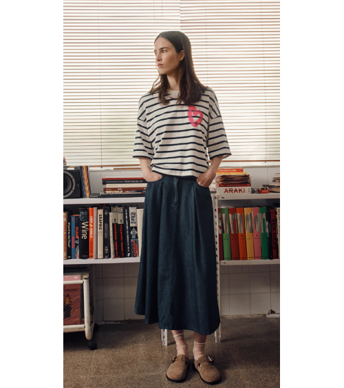 Quick view Añadir a la cesta Lista de deseos Añadir a comparar Camiseta rayas navy/blanco detalle corazón fuxia corte oversize DES PETITS HAUTS Precio 85,00 € La camiseta de Fionna rompe los códigos de la clásica camisa de marinero al adoptar un corte cuadrado muy actual y oversize. Disponible en jersey...