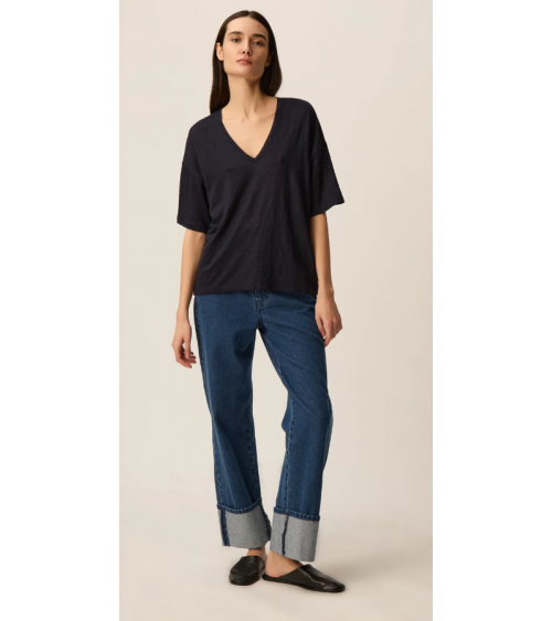 Quick view Añadir a la cesta Lista de deseos Añadir a comparar Camiseta azul lago cuello V de lino fluido oversize DES PETISTS HAUTS Precio 80,00 € Con su corte oversize actual y escote favorecedor, la camiseta de cuello en V en azul lago de Hanabelle cumple con todos los requisitos de una...