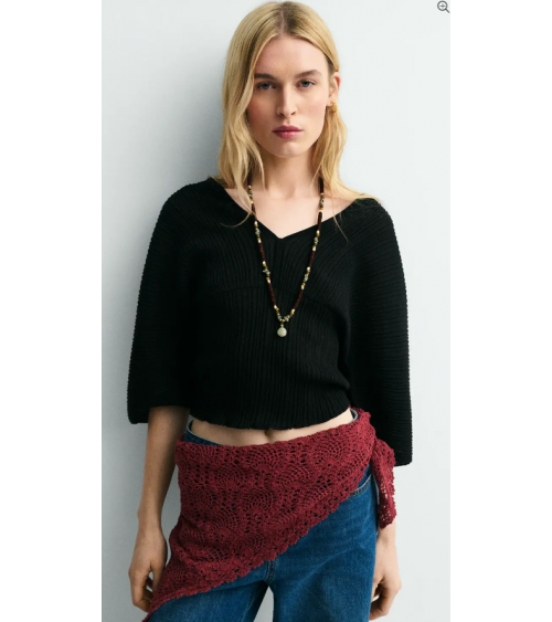 Quick view Añadir a la cesta Lista de deseos Añadir a comparar Jersey negro punto plisado escote V espalda y pecho ESEOESE Precio 69,90 € Jersey negro de manga corta con mezcla de algodón con textura plisado, escote V de ESEOESE
