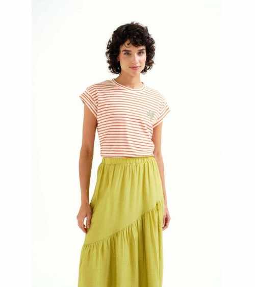Nuevo Quick view Añadir a la cesta Lista de deseos Añadir a comparar Camiseta rayas caldero/blanco palmera verde COMPAÑÍA FANTÁSTICA Precio 25,00 € Camiseta de rayas en colores crudo y caldero con detalle palmera verde en el pecho. Cuello redondo y manga corta. COMPAÑÍA FANTÁSTICA