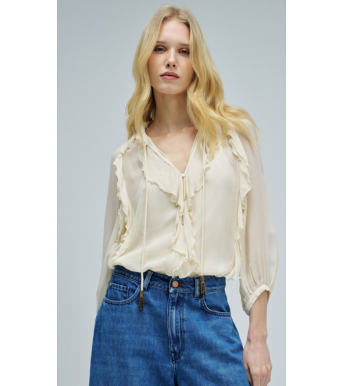 Nuevo Quick view Añadir a la cesta Lista de deseos Añadir a comparar Blusa vainilla volantes regular fit escote Vcon cintas y cuentas SALSA JEANS Precio 69,95 € Ligera y delicada, esta blusa con volantes se destaca por su fluidez y por los detalles femeninos que añaden movimiento al look. En tono vainilla,...