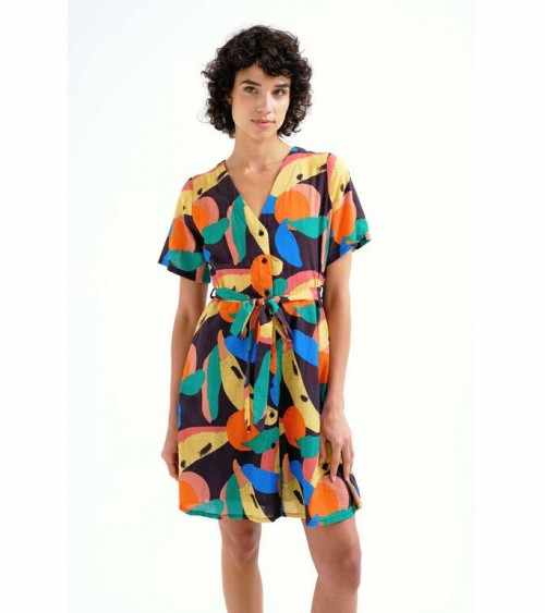Quick view Añadir a la cesta Lista de deseos Añadir a comparar Vestido corto negro estampado multicolor manga corta escote pico COMPAÑÍA FANTÁSTICA Precio 50,00 € Vestido corto negro con estampado multicolor. Manga corta y escote pico. Cierre central con botones. COMPAÑÍA FANTÁSTICA