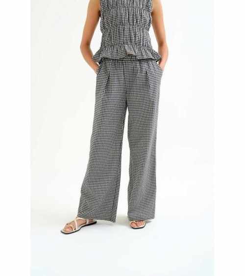 Quick view Añadir a la cesta Lista de deseos Añadir a comparar Pantalón vichy negro/blanco pierna ancha cintura elástica COMPAÑÍA FANTÁSTICA Precio 45,00 € Pantalón largo vichy negro y blanco. Piernas anchas con cintura elástica y cordón para mejor ajuste. COMPAÑÍA FANTÁSTICA