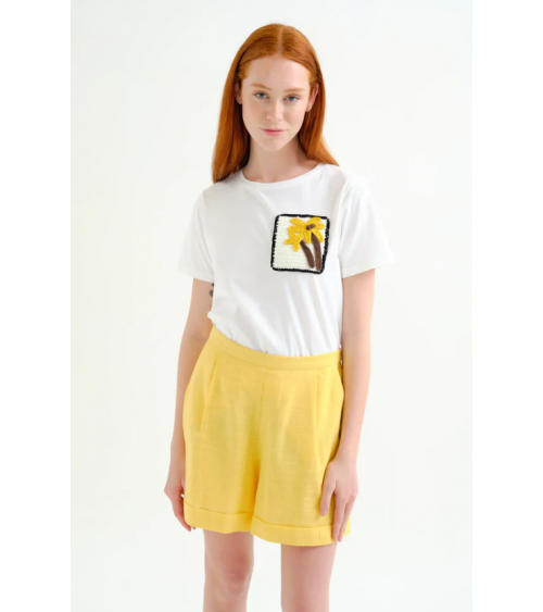 Quick view Añadir a la cesta Lista de deseos Añadir a comparar Camiseta blanca manga corta detalle croché efecto bolsillo COMPAÑÍA FANTÁSTICA Precio 35,00 € Camiseta blanca de manga corta y cuello redondo. Cuenta con detalle de croché cuadrado a contraste en negro, amarillo y marrón haciendo efecto...