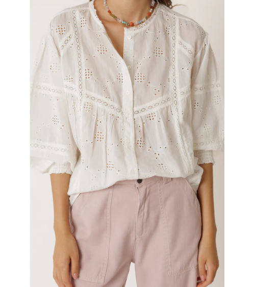 Quick view Añadir a la cesta Lista de deseos Añadir a comparar Camisa blanca manga larga bordado suizo puntilla insertada INDI&COLD Precio 129,00 € Camisa de manga larga en voile de algodón, puro ADN Indi. Cuello con micro volante, puntilla insertada en el talle y en las mangas. Bordado suizo...