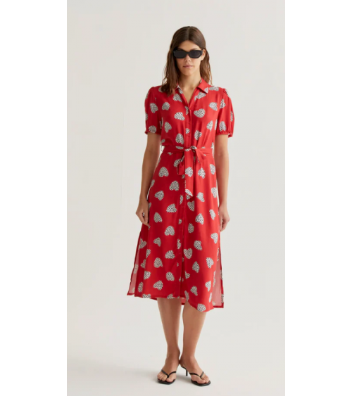 Quick view Añadir a la cesta Lista de deseos Añadir a comparar Vestido rojo midi camisero corazones COMPAÑÍA FANTÁSTICA Precio 55,00 € Vestido rojo midi con estampado corazones crudo con lunares negros. Cuello solapa y manga corta ligeramente abullonada. Cierre frontal con botones...