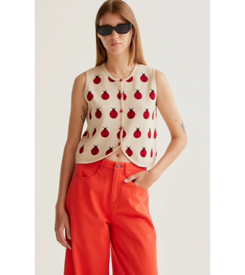 Quick view Añadir a la cesta Lista de deseos Añadir a comparar Chaleco punto estampado mariquitas cierre botones COMPAÑÍA FANTÁSTICA Precio 45,00 € Chaleco con tejido de punto con estampado mariquitas. Cuello redondo y sin mangas. Cierre frontal con botones de color rojo. COMPAÑÍA FANTÁSTICA