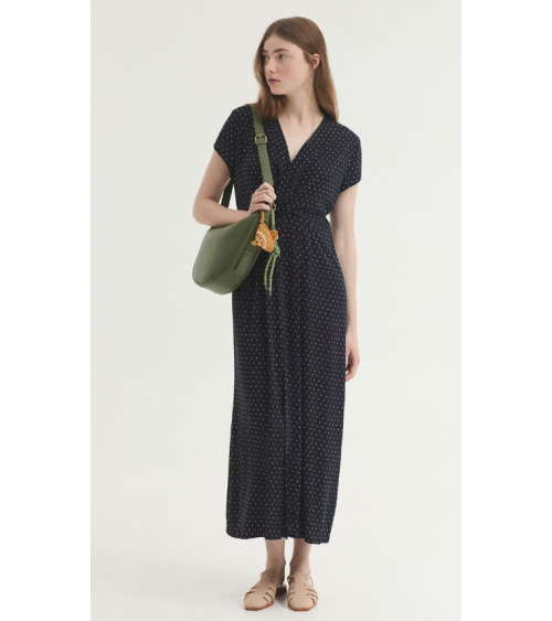 Quick view Añadir a la cesta Lista de deseos Añadir a comparar Vestido largo marino small dots escote pico manga corta NICE THINGS Precio 125,00 € Vestido largo estampado Small Dots. Escote pico cruzado. Bolsillos laterales. Cremallera invisible y abertura con botón en la parte trasera. Manga...