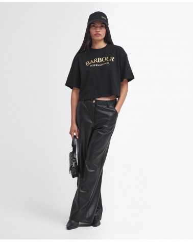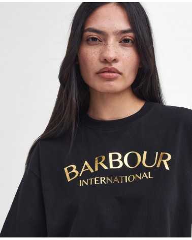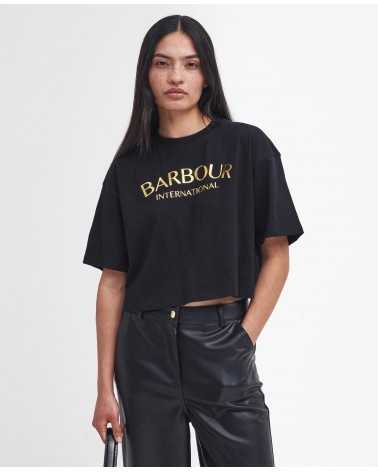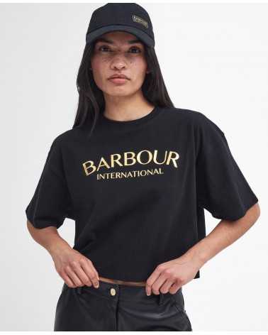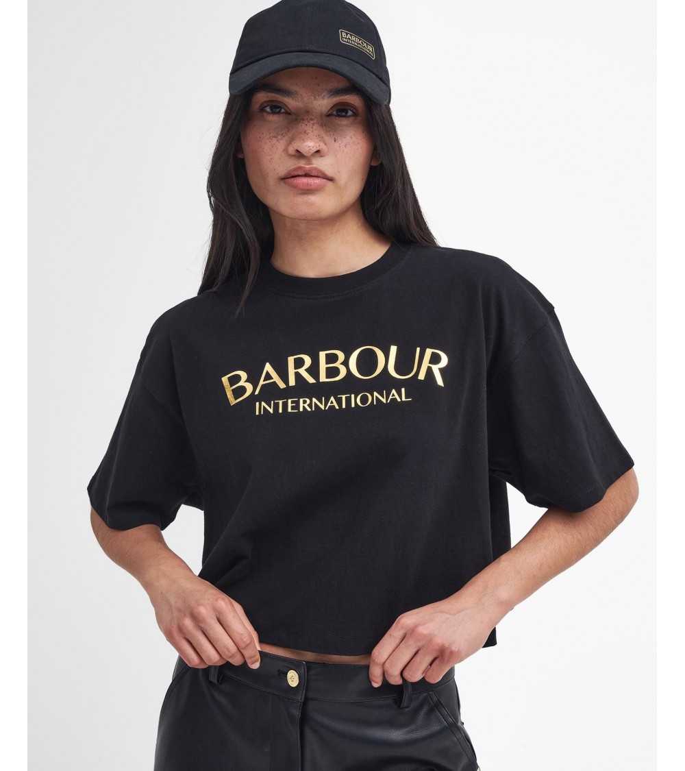 Camiseta negra logo dorado manga corta cuello redondo BARBOUR