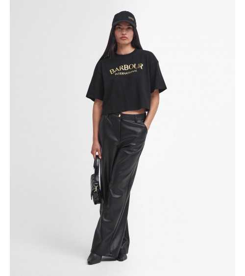 La camiseta de mezcla de algodón presenta cuello redondo y mangas cortas en color negra por lo que es fácil de combinar con tus prendas relajadas favoritas, desde leggings hasta jeans Barbour International.