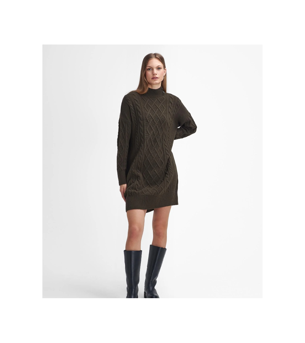 Si lo que buscas es comodidad y calidez, el vestido de punto Clarence de Barbour lo refleja en su diseño en color verde oliva.