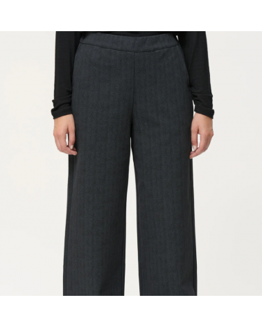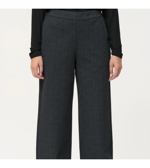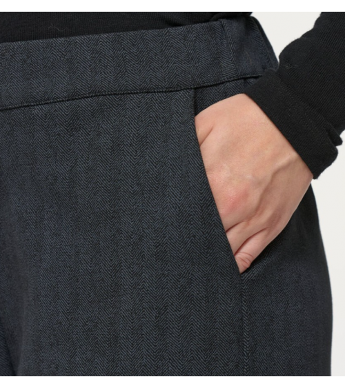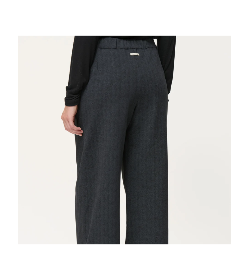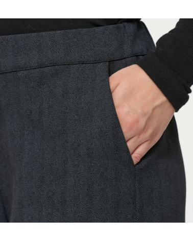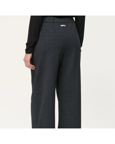 Pantalón recto en tejido de espiguilla color antracite-marino con goma atras en la cintura y bolsillos Humility.