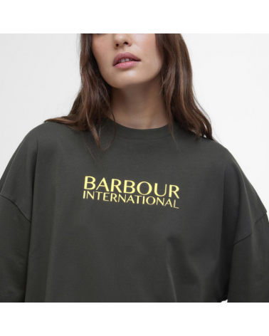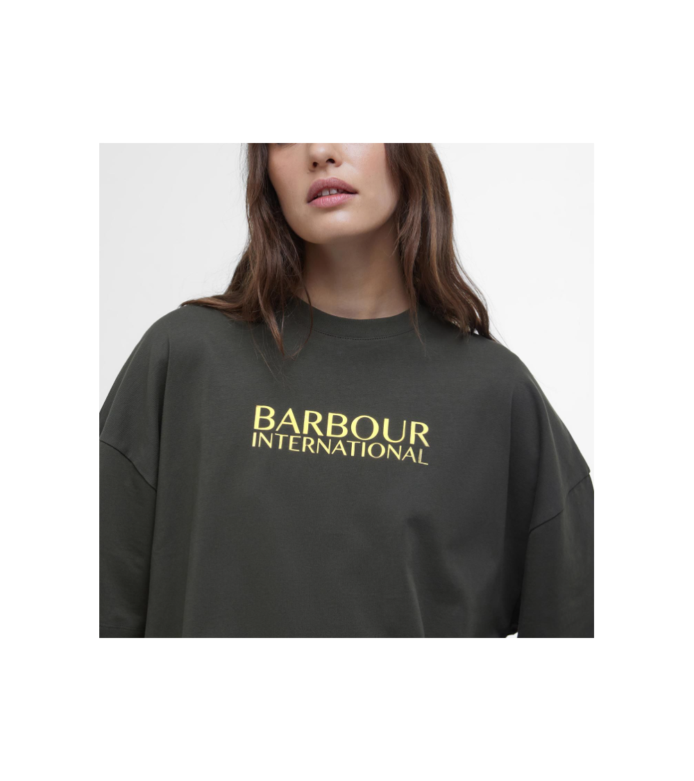 Camiseta con logotipo de la marca BARBOUR en color dorado en pecho, de manga corta y cuello redondo. Corte cuadrado para una mayor confortabilidad