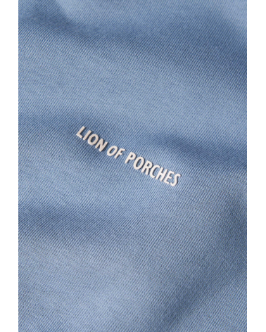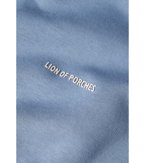 Sudadera azul grisáceo básica cuello redondo detalle marca en el frente LION OF PORCHES