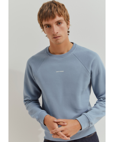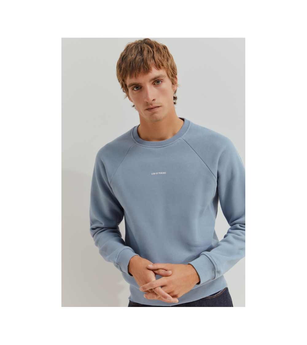 Sudadera azul grisáceo básica cuello redondo detalle logo en el pecho de LION OF PORCHES