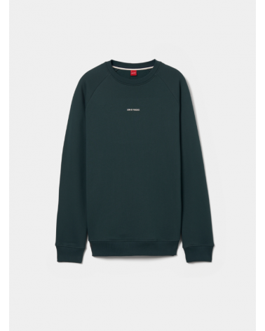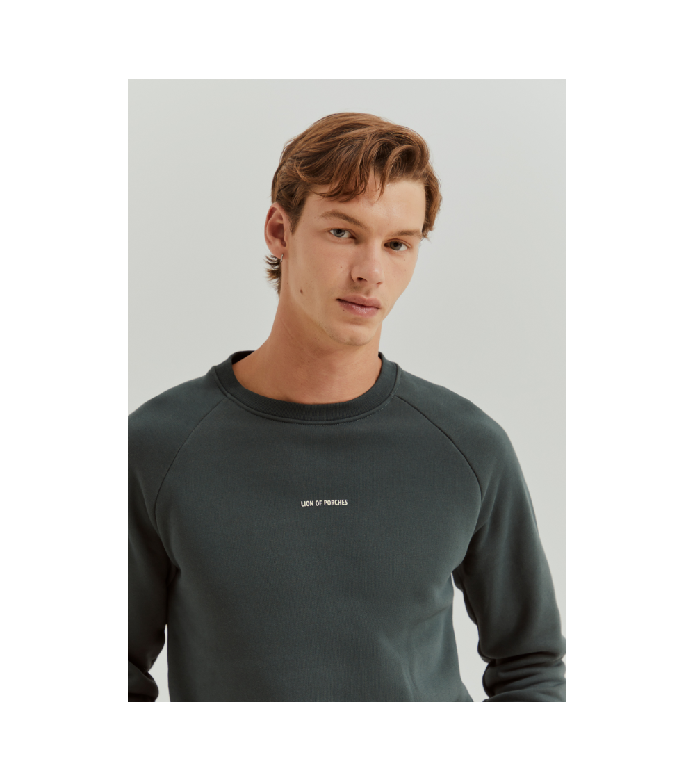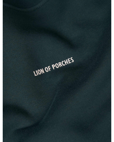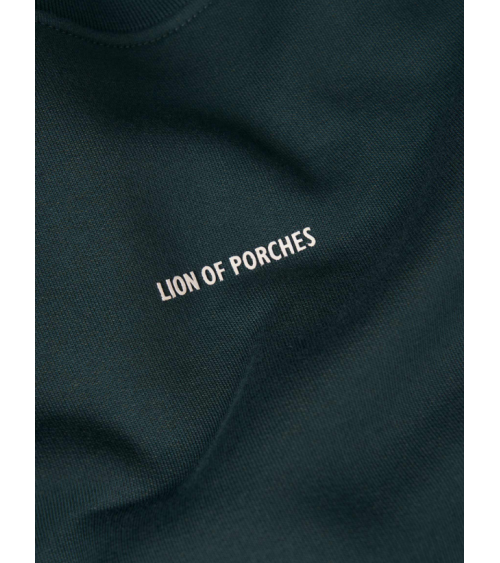 Sudadera básica verde botella cuello redondo detalle marca en el frente LION OF PORCHES