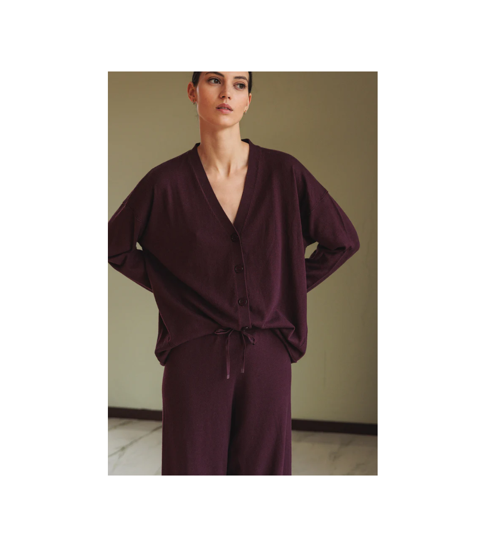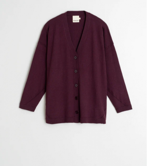 Esta chaqueta de escote pico está confeccionada con un punto de lana combinado con hilo de origen marino. Es un fit amplio, actual y cómodo para el día a día.