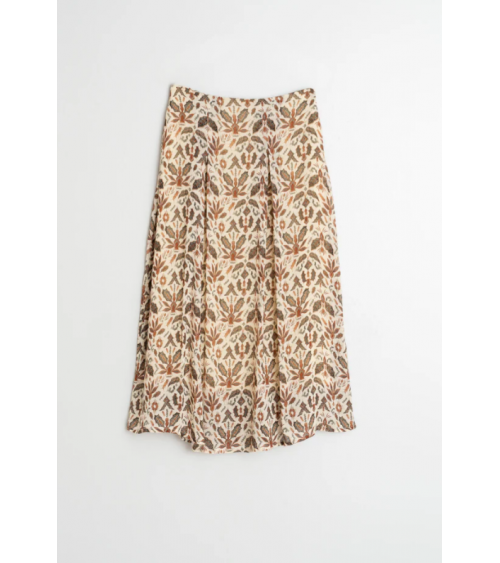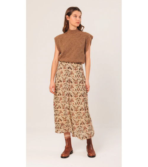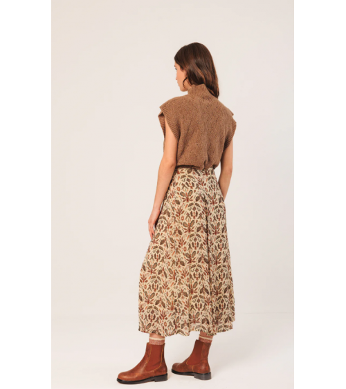 Falda midi tonos tierra estampado hojas con vuelo INDI&COLD