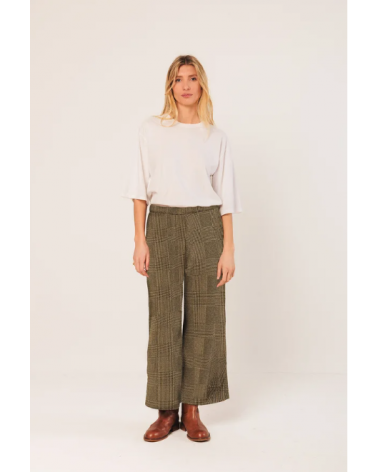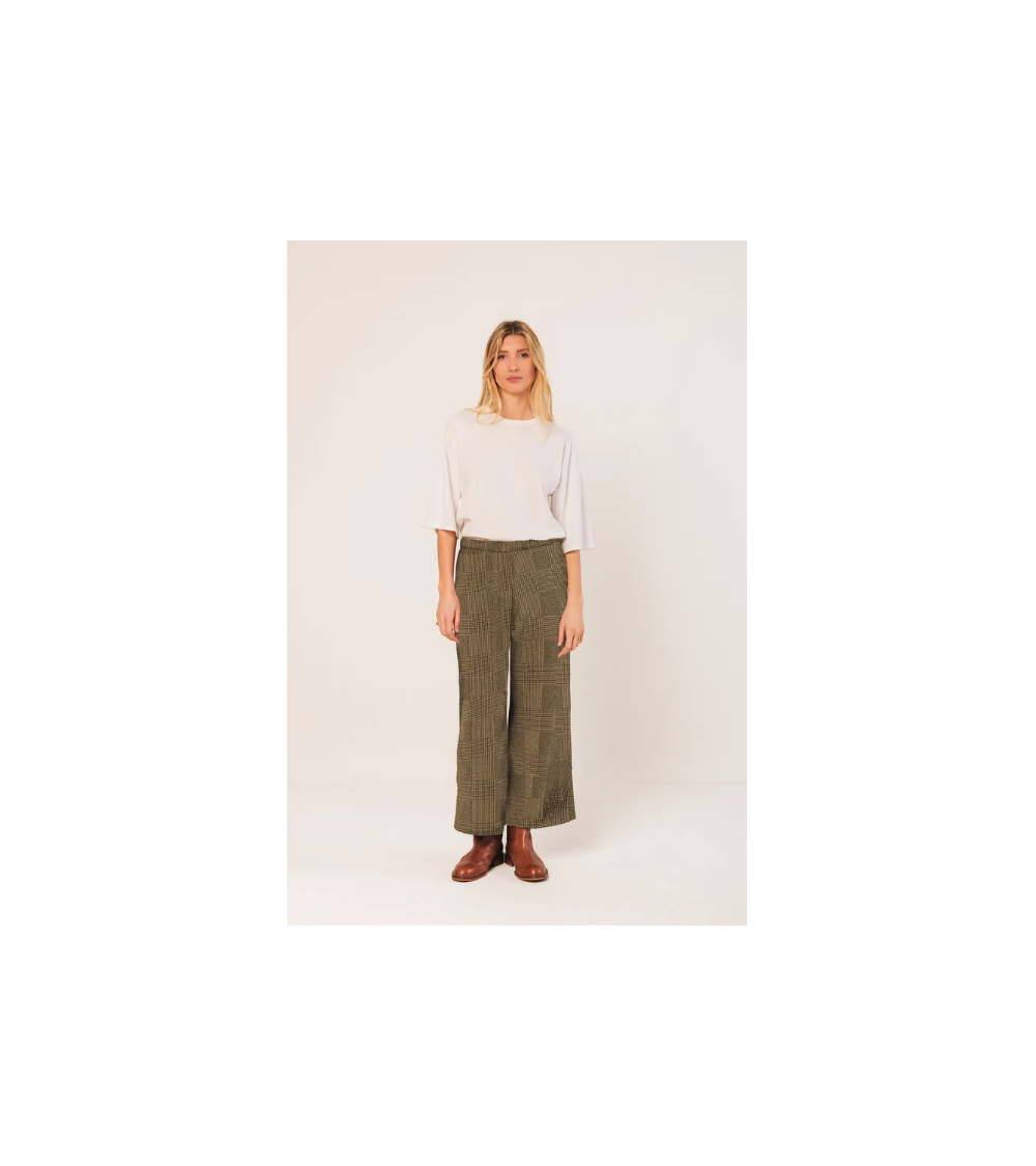 Pantalón estampado pata gallo verde/crudo cintura elástica INDI&COLD