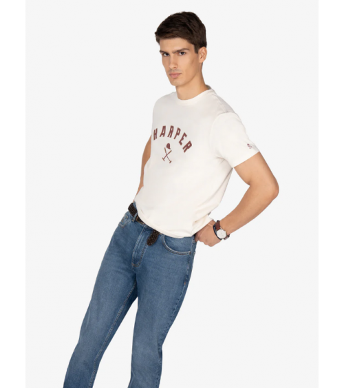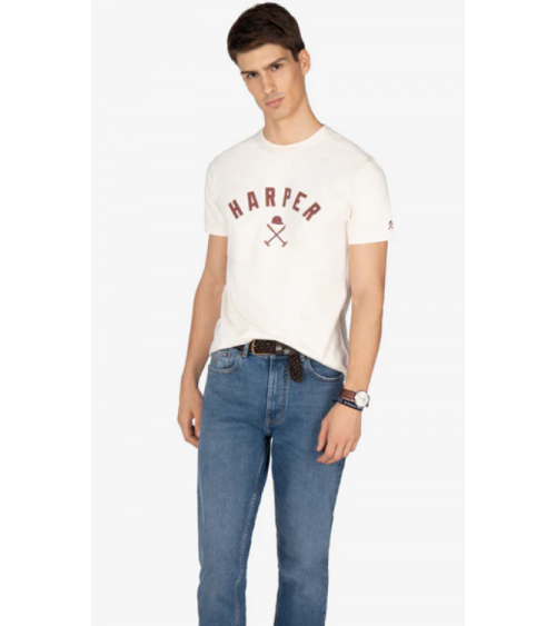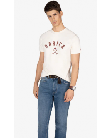 Camiseta blanco roto logo granate en el pecho manga corta HARPER&NEYER