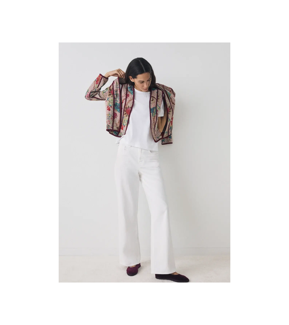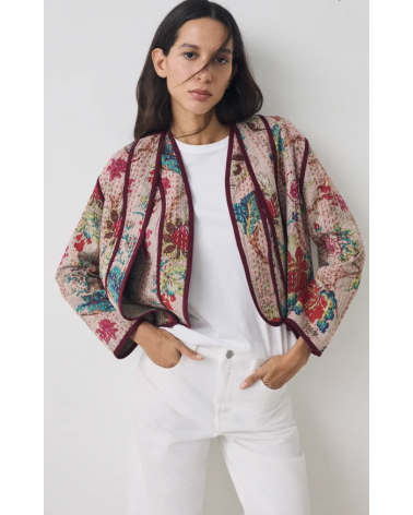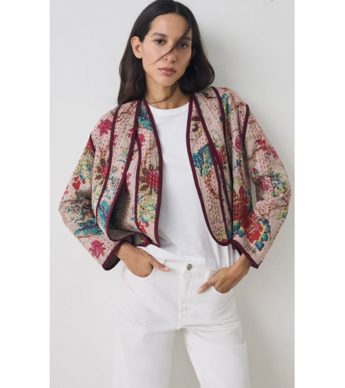 Chaqueta acolchada de flores en pico con acacados en granate y abierta Eseose.