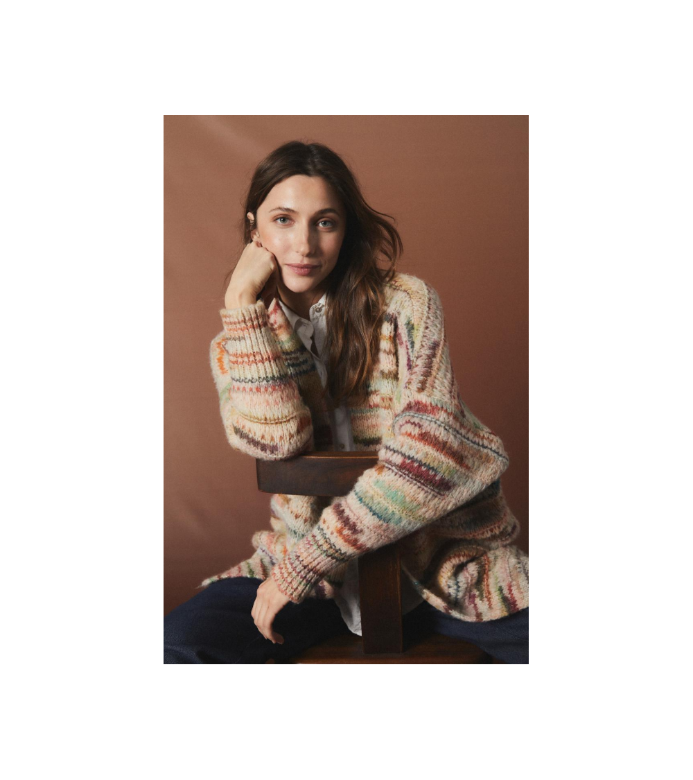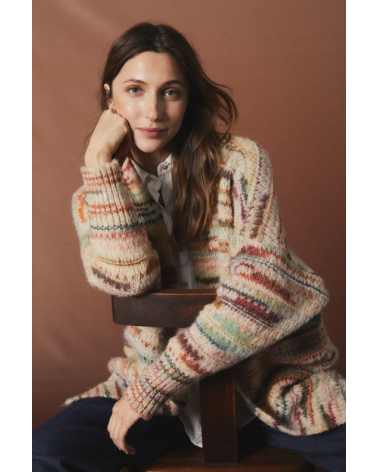 Chaqueta punto abierta sin ciere en mezclilla de tonos, rosas verdes o granates Miandco.
