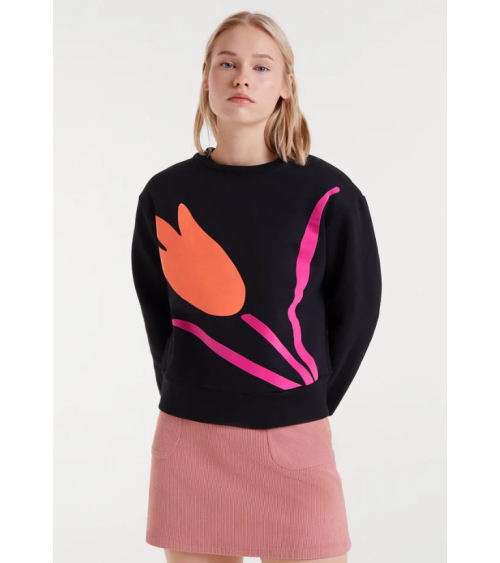 Sudadera con print de flor. Con cuello redondo y manga larga. Detalle de acabados en rib. La modelo mide 179 cm y lleva la talla S. Compañía Fantástica.