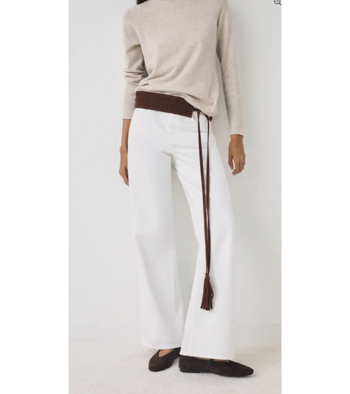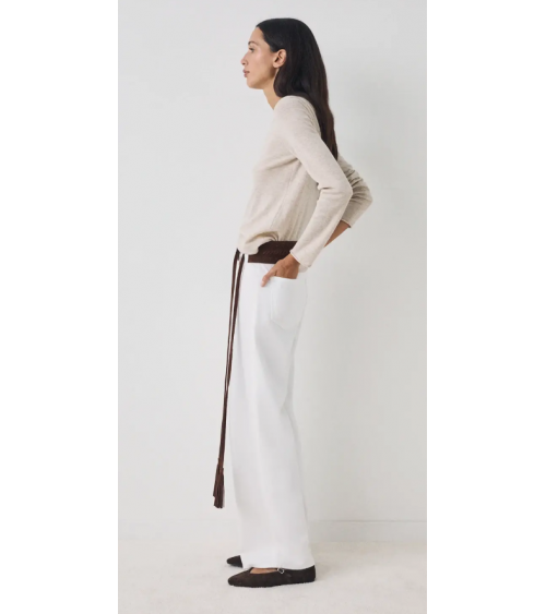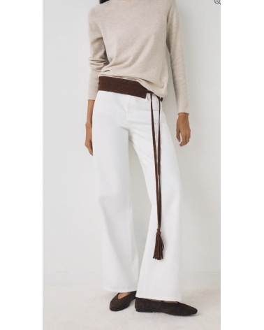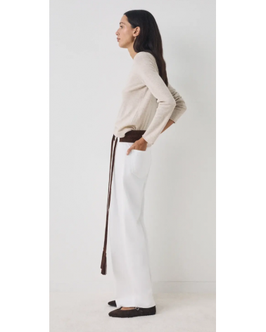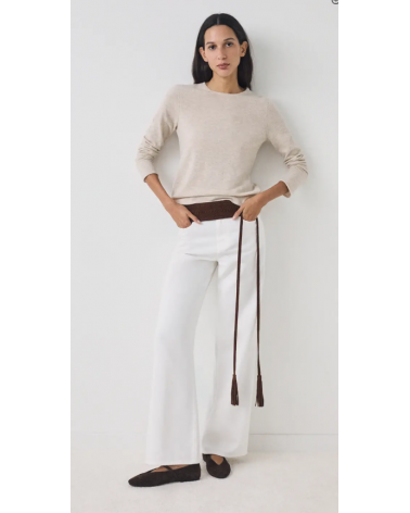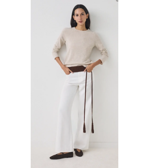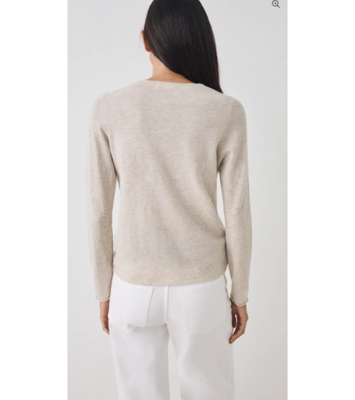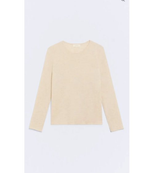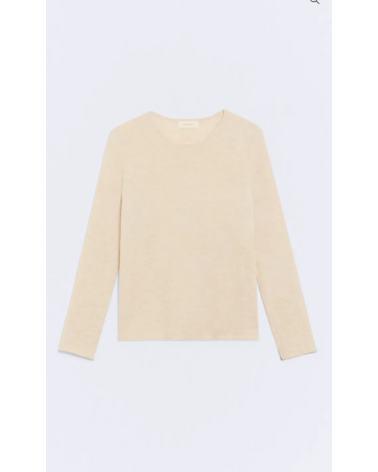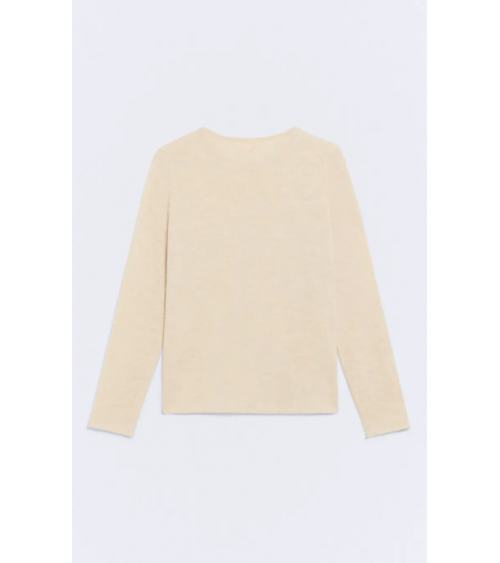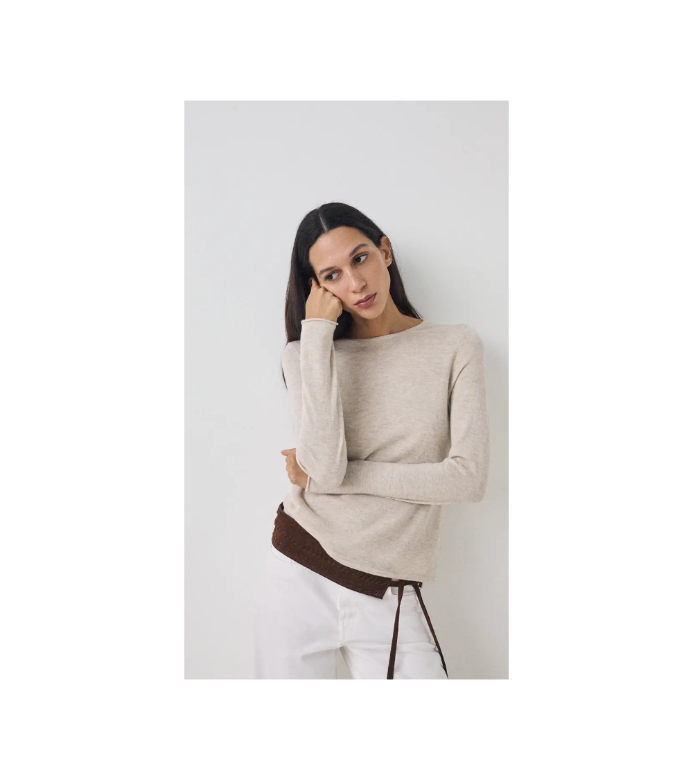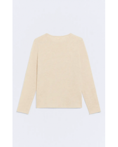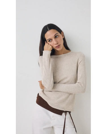 Jersey básico de punto de galga fina. Color arena. Cuello caja. Manga larga. Fitting recto sin ajustar. Tejido de lana y algodón semitransparente. Largo prenda para talla S: 58,5 cm. ESEOESE