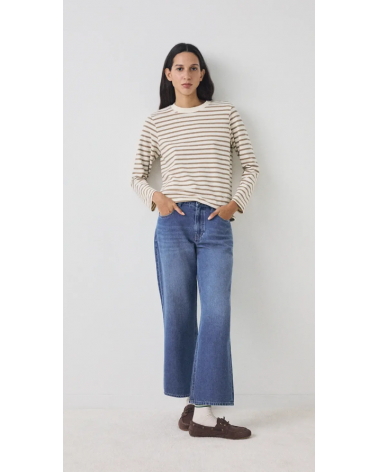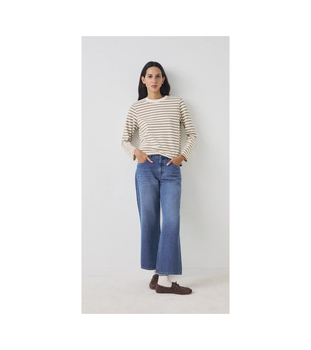Pantalón de tiro alto recto y largo crop. Hecho de algodón BCI. Estilo Denim Eseose.
