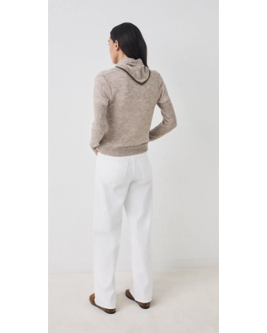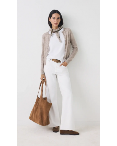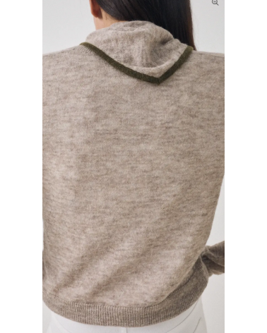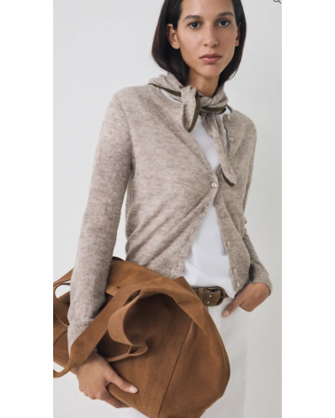 Cárdigan beige ribete kaki con pañuelo a tono ESEOESE