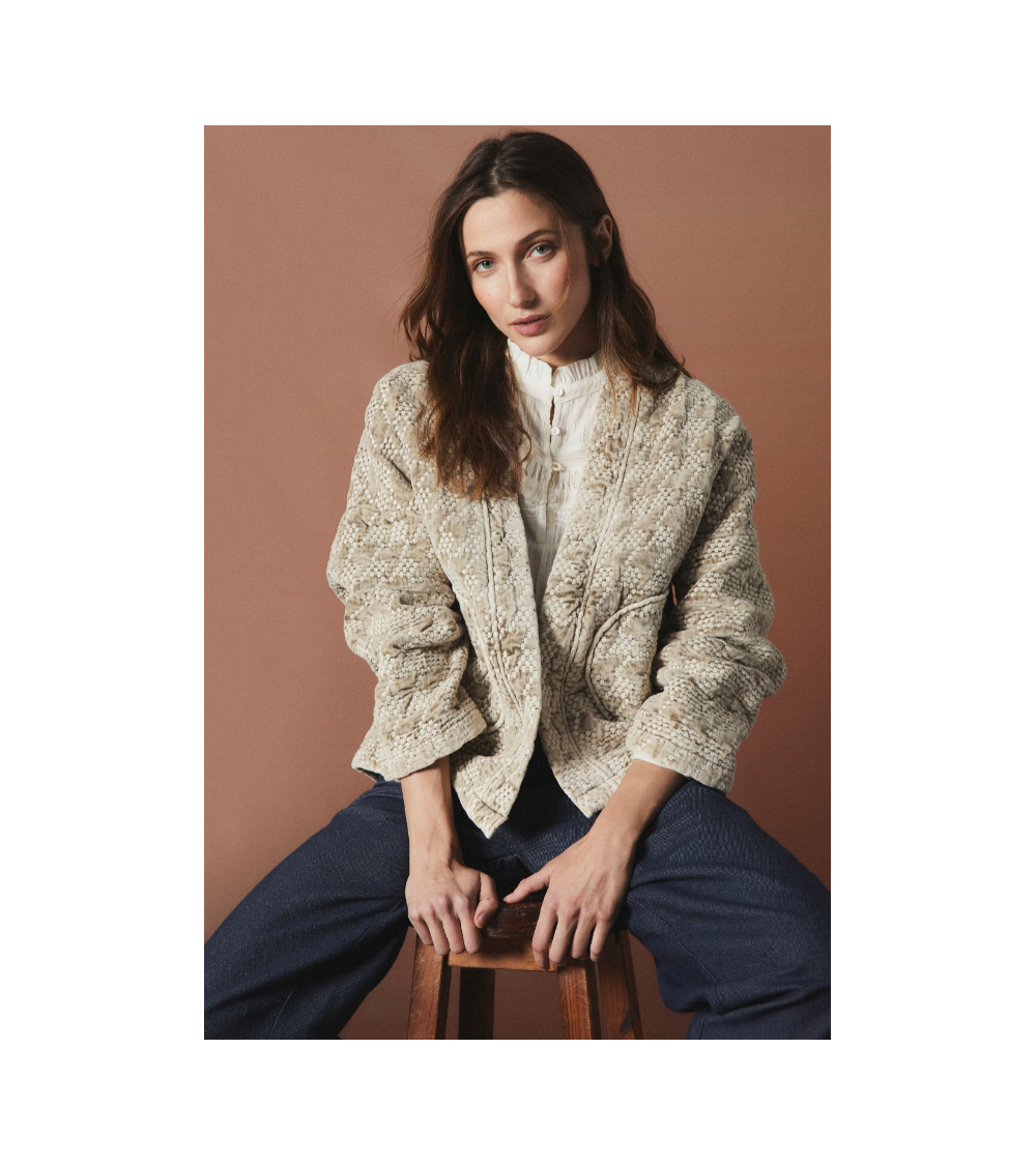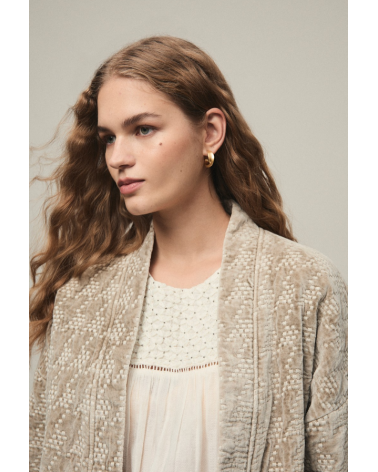 Quick view Añadir a la cesta Lista de deseos Añadir a comparar Kimono rustico estampado Eseose Precio 79,90 € Kimono oversize con estampado de flores en tejido rústico de algodón Eseose. Manga amplia. Acabados con ribete marrón. Dos bolsillos delanteros...