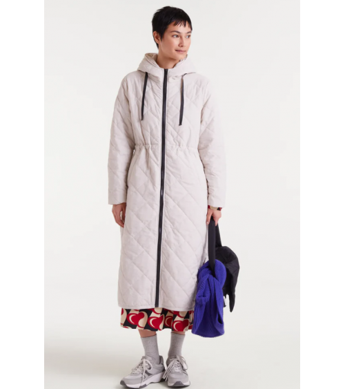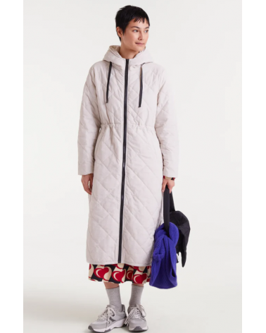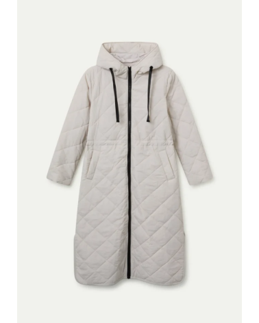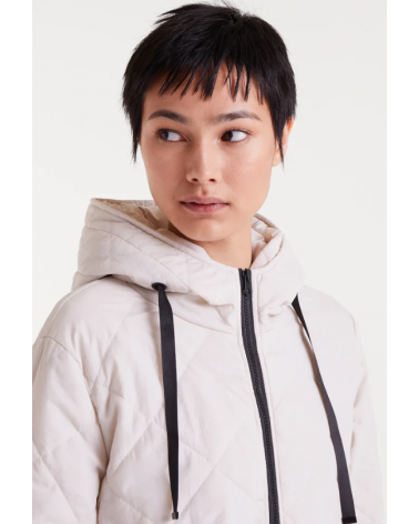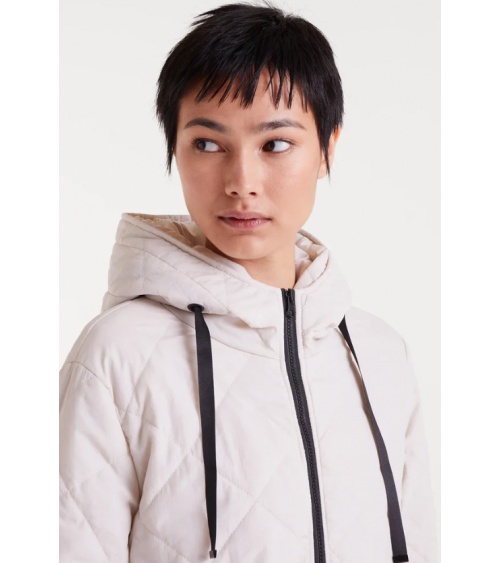 Abrigo con tejido acolchado de color blanco. Cuello alto con capucha ajustable y manga larga terminada en puño elástico. Cierre frontal con cremallera. Hombro ligeramente caído. Bolsillos laterales. Forro interior. La modelo mide 177 cm y lleva la talla S de COMPAÑÍA FANTÁSTICA