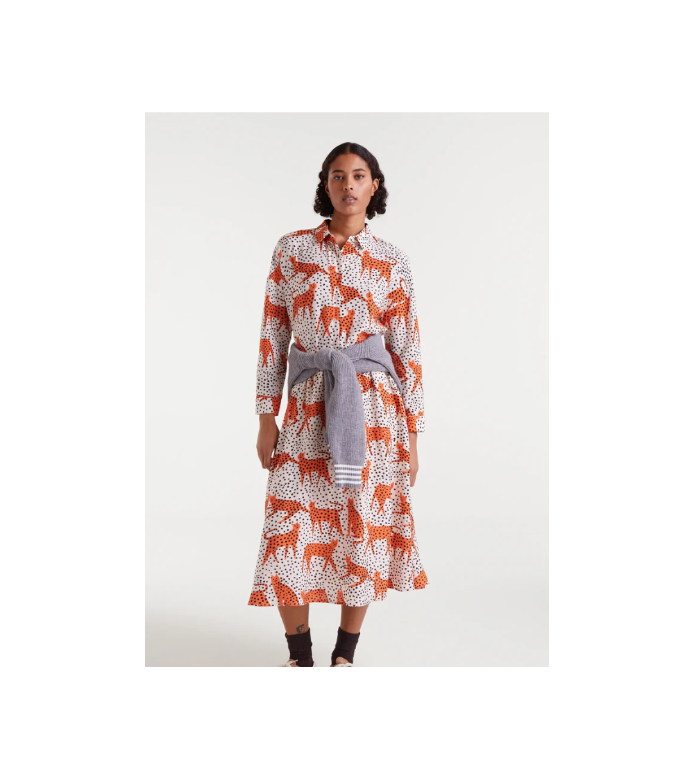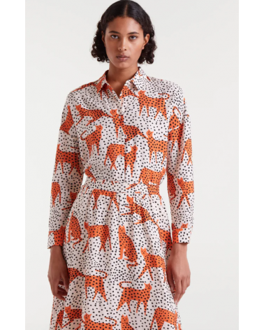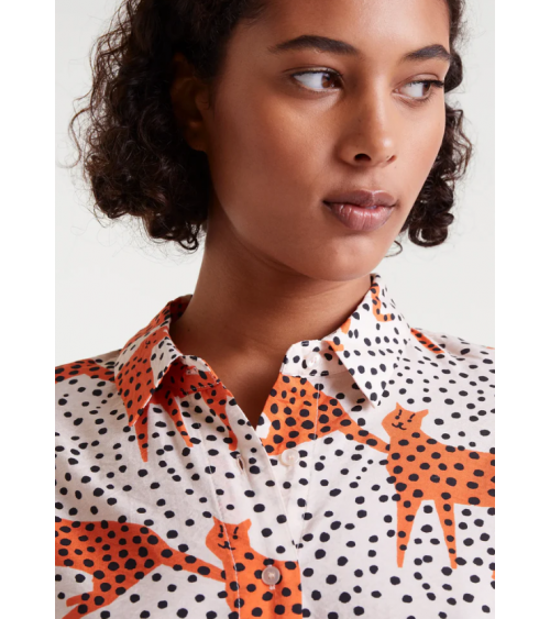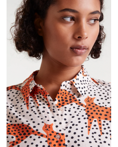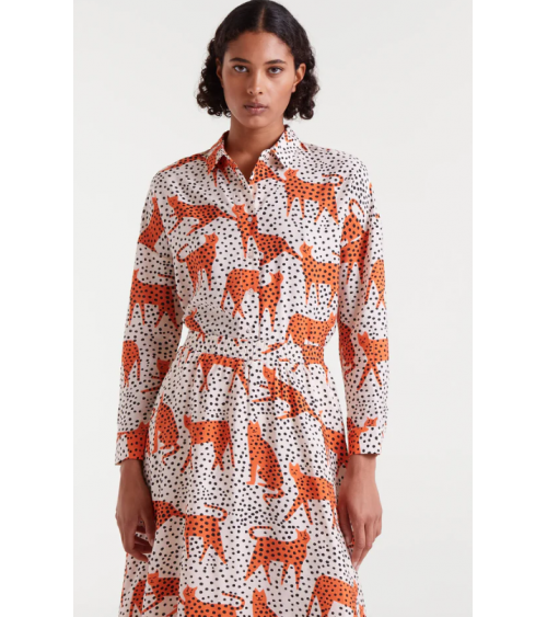 Camisa crudo crepé ligero estampado pumas cuello solapa cierre central botones COMPAÑÍA FANTÁSTICA