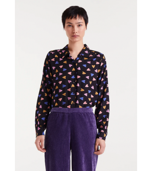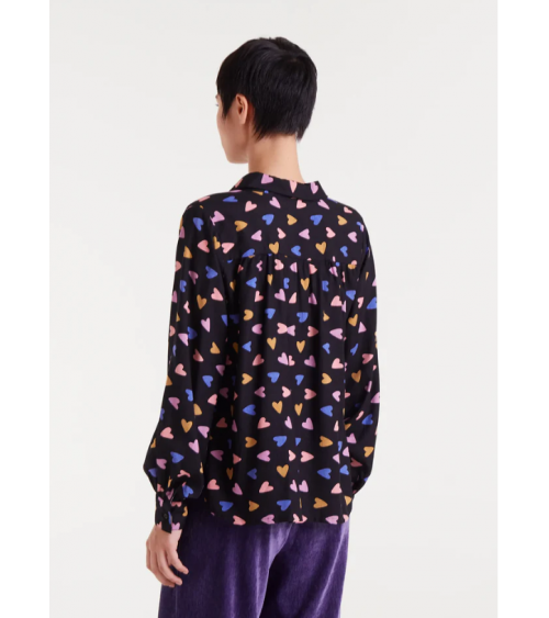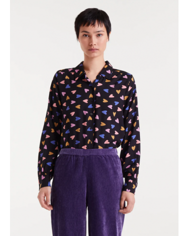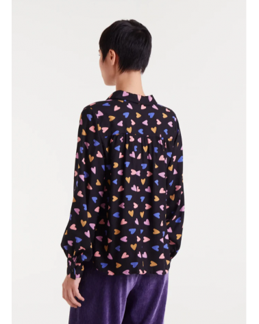 Camisa negra estampado corazones colores cuello solapas COMPAÑÍA FANTÁSTICA