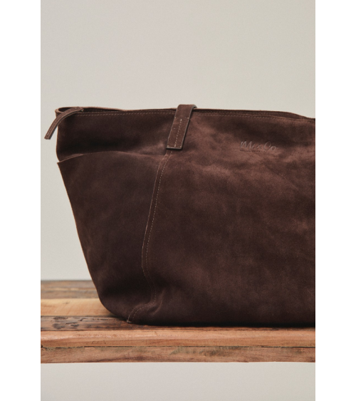 Bolso shopper de ante. Cierre mediante cremallera metálica.. Bolsillos exteriores en cada lateral. Medidas: 55cm de largo, 32cm de alto, 18cm de ancho de MI&CO