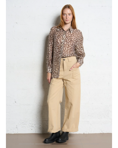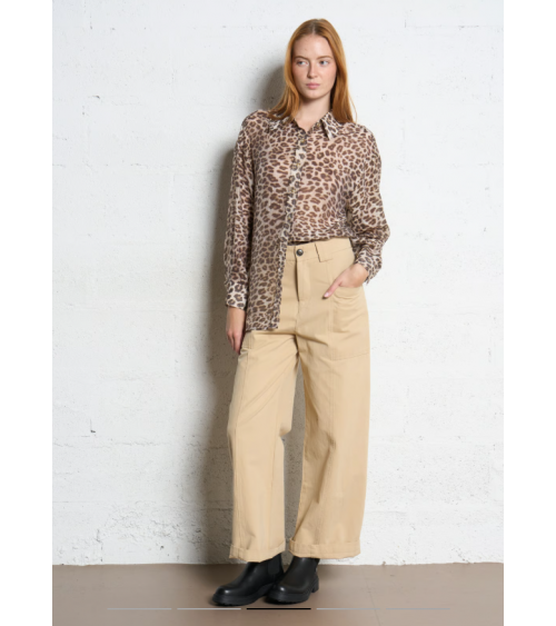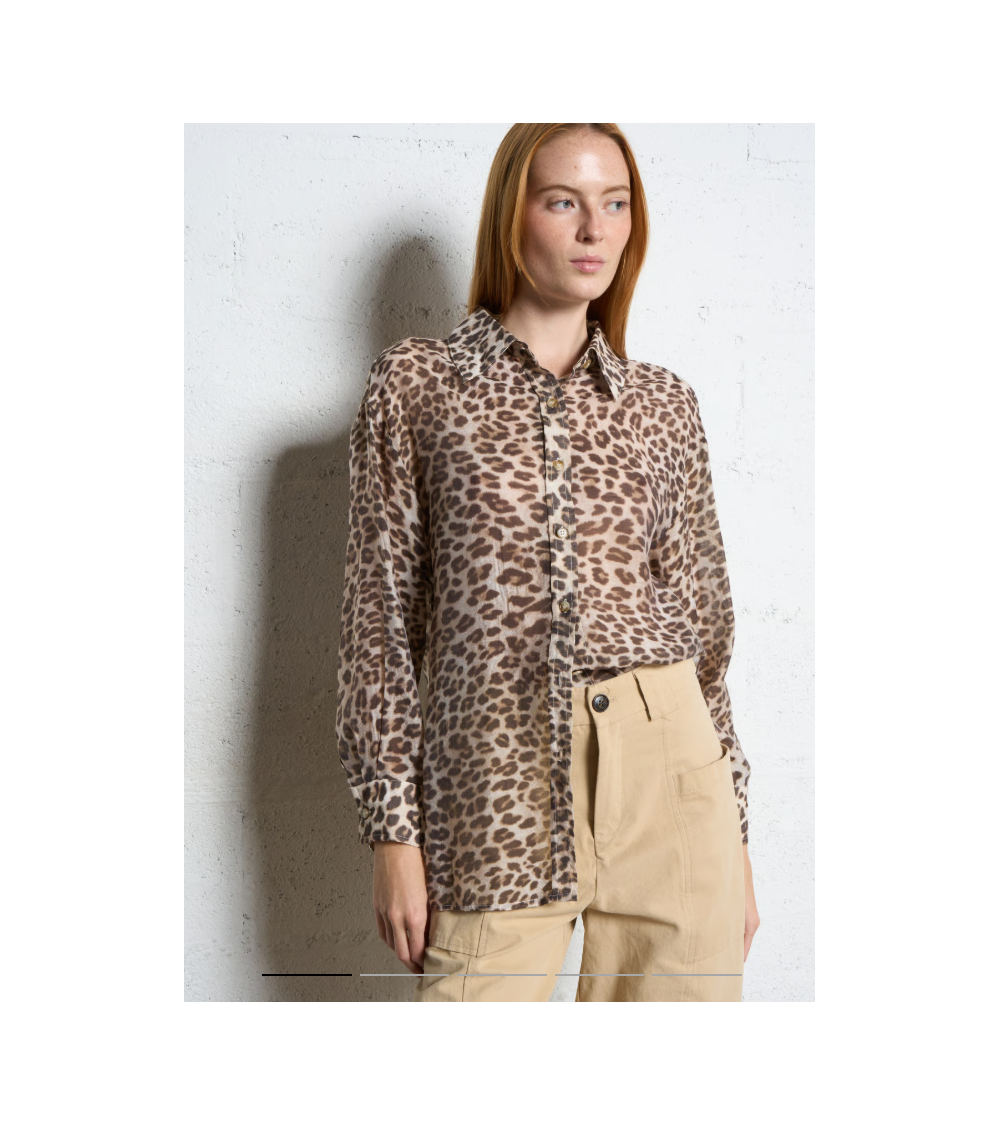 Camisa leopardo marrón corte amplio cuello clásico cierre central abotonado THE KORNER
