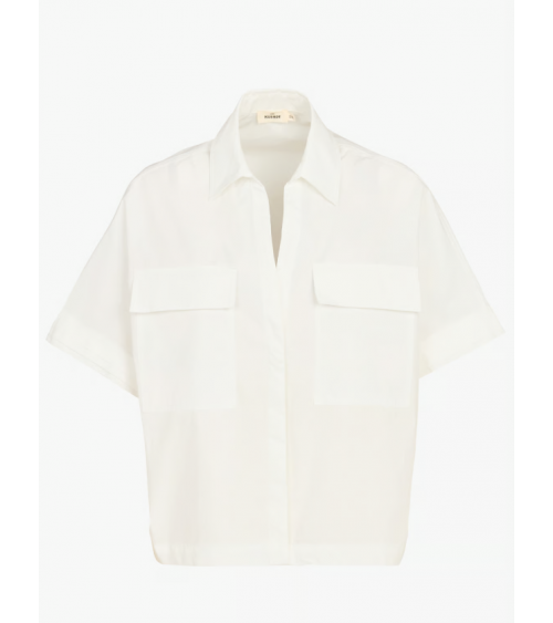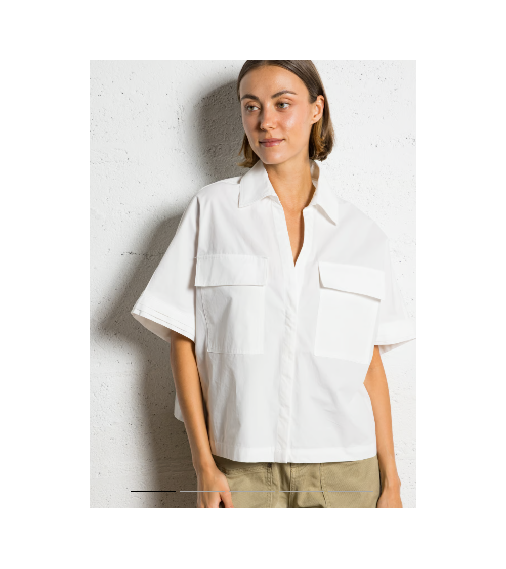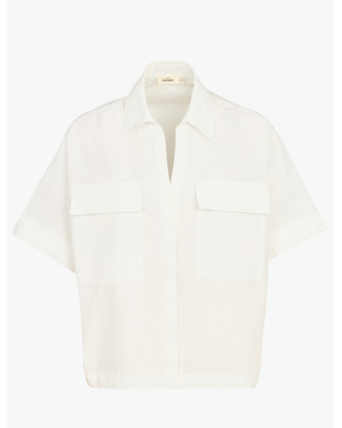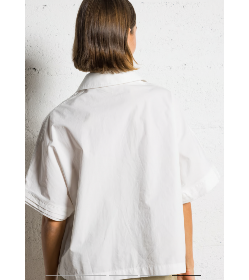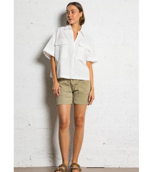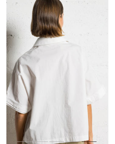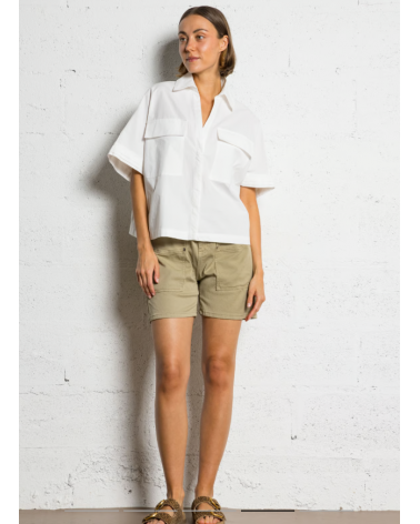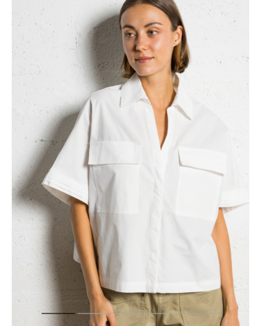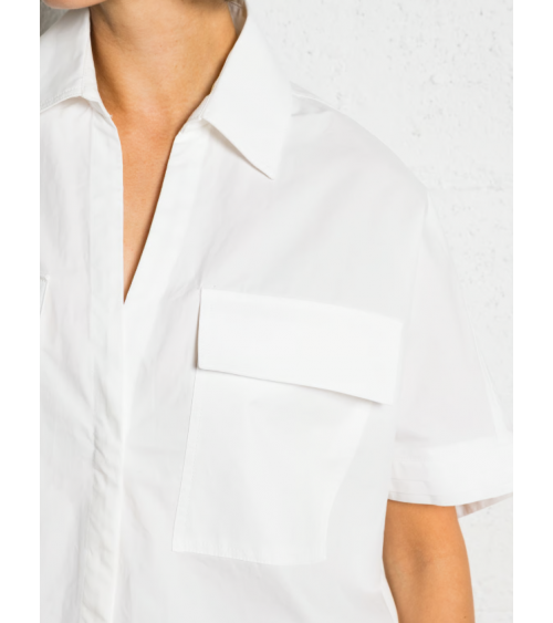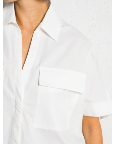 Camisa algodón blanca cuello V sin mangas corte recto bolsillos plastrón THE KORNER