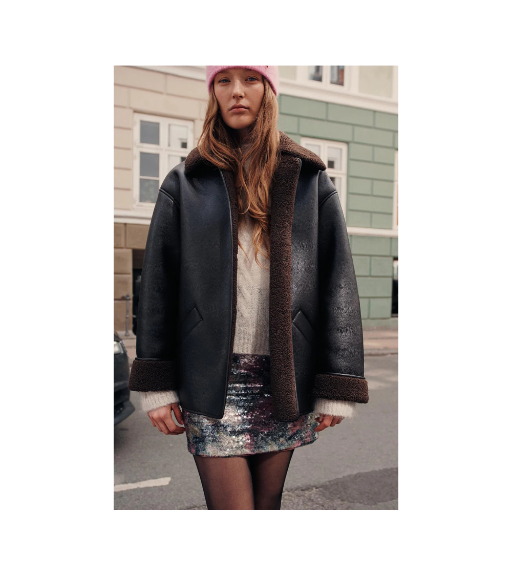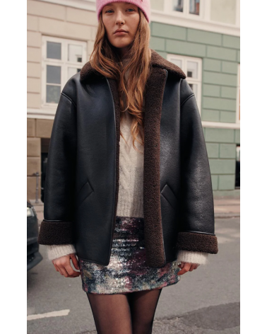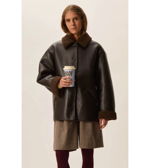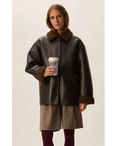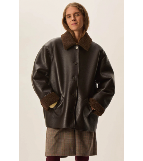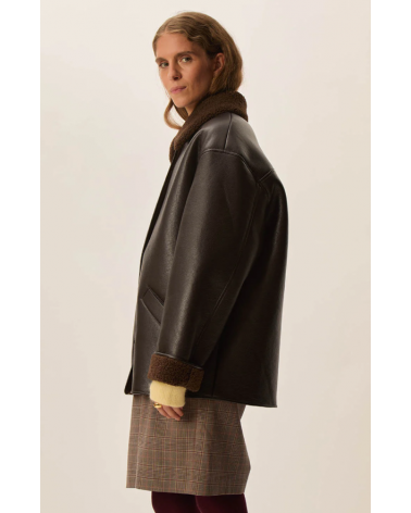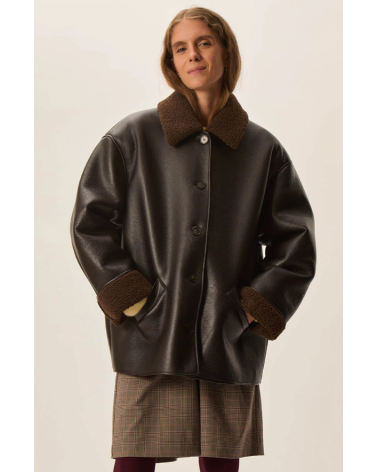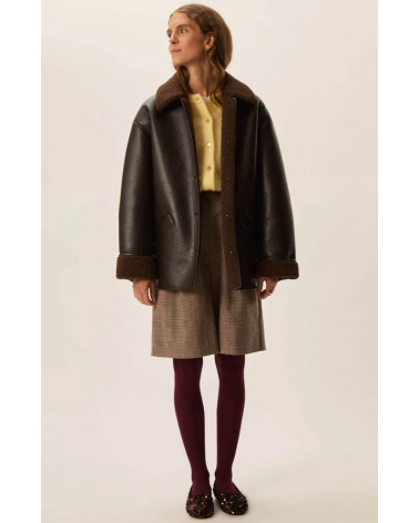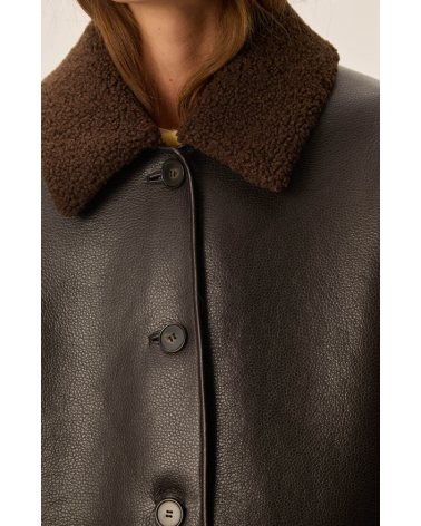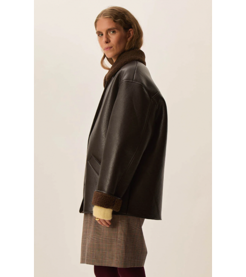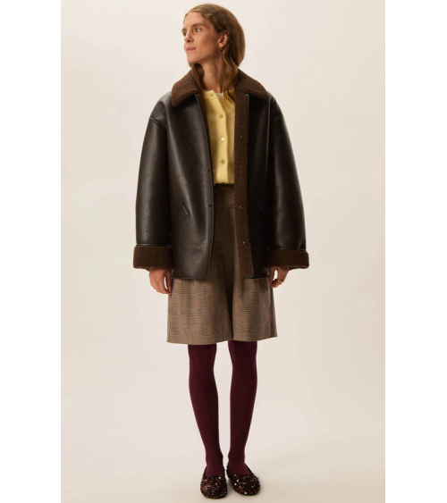 Abrigo corto marrón piel oveja corte holgado DESPETITSHAUTS