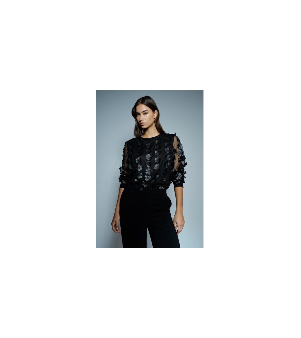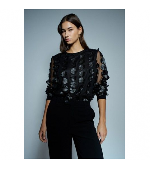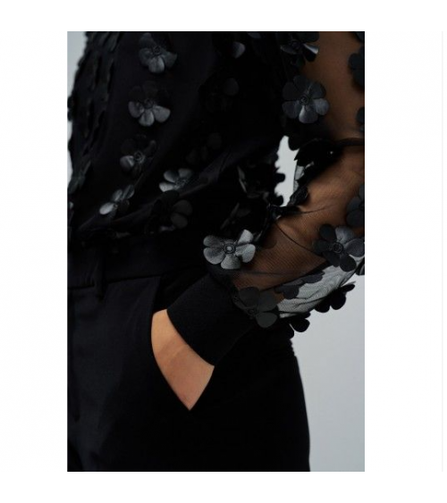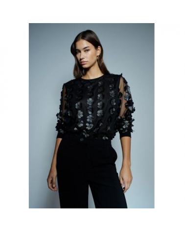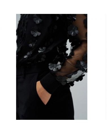 Sudadera/camiseta negra tul manga larga detalle flores efecto piel SALSA JEANS CHICA