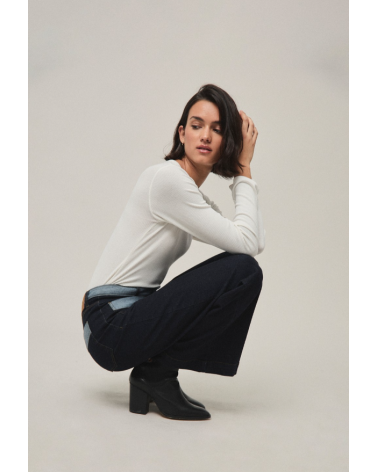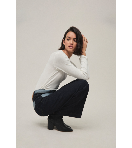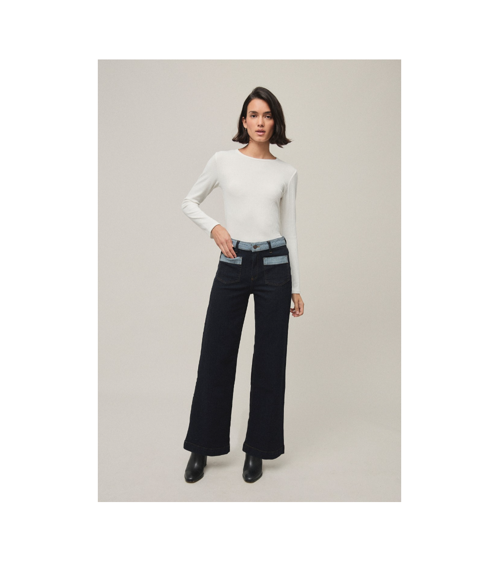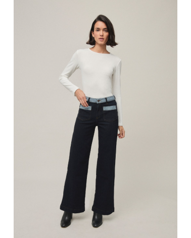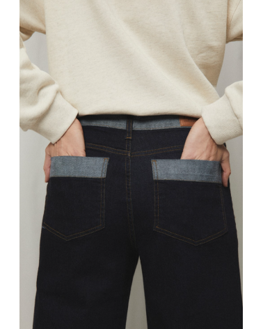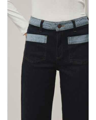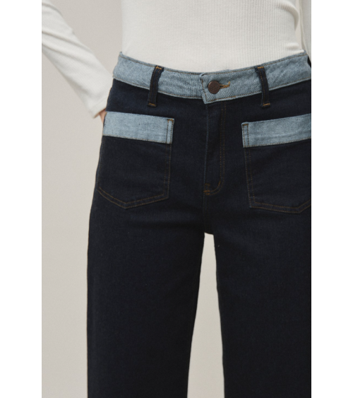 Pantalón denim oscuro vivos denim claro bolsillos plastrón delanteros y traseros de MI&CO