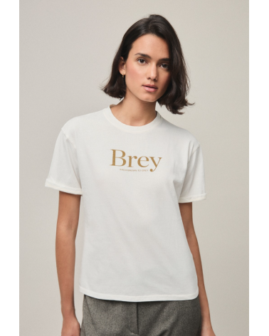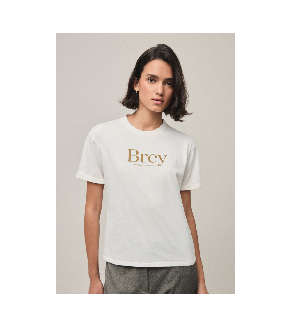 Camiseta blanca manga corta cuello redondo canalé gráfico "Brey FROM BROWN TO GRAY" corte recto MI&CO