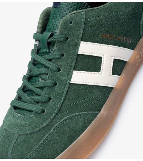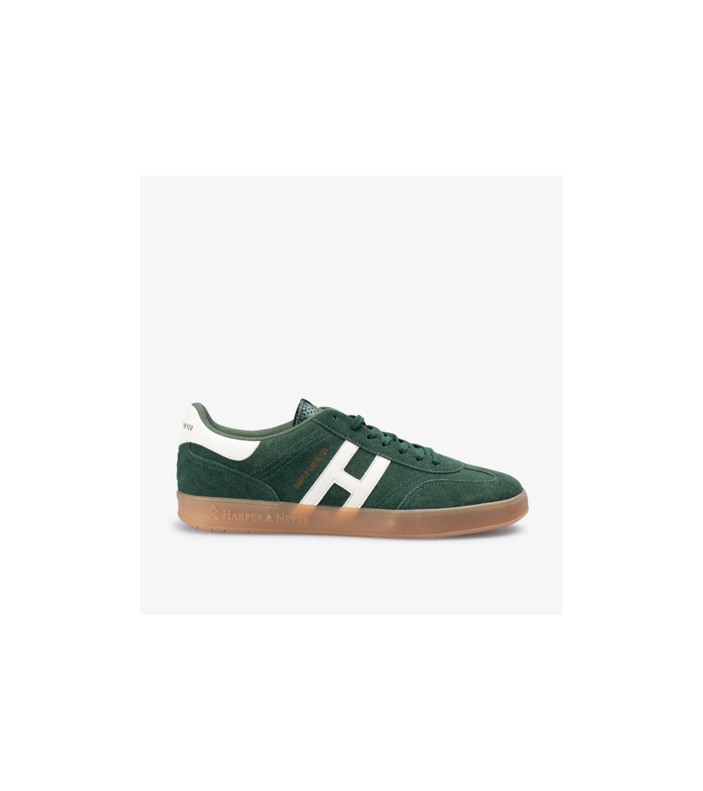 Deportiva verde botella perfil bajo serraje H contraste HARPER&NEYER