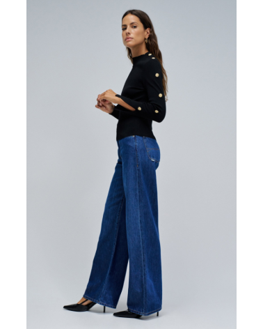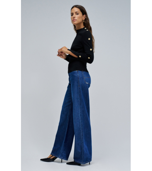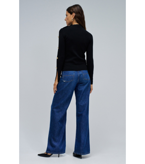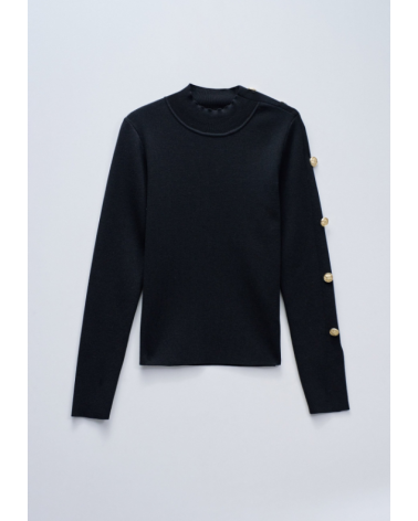 Jersey negro botones decorativos en hombros y mangas SALSA JEANS